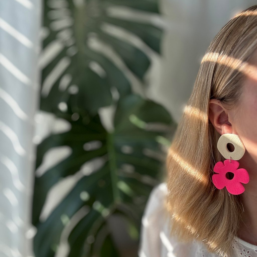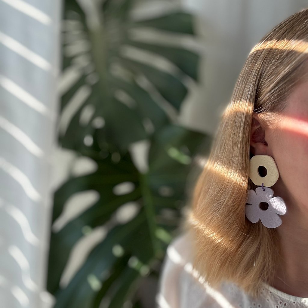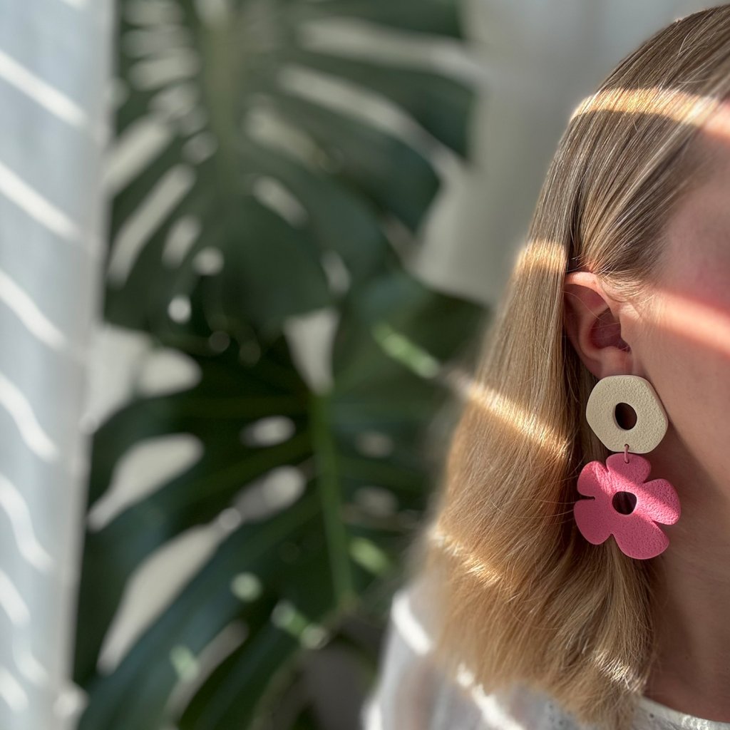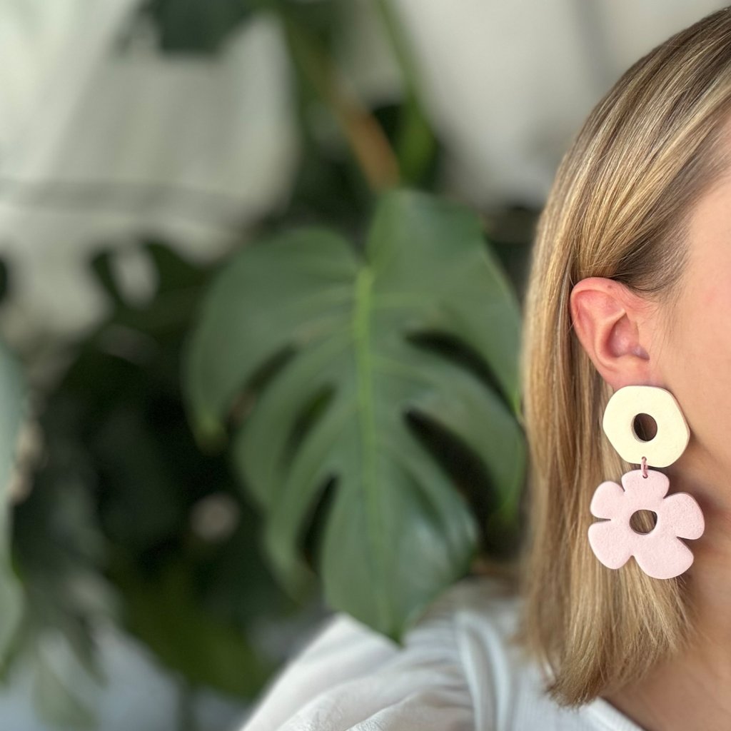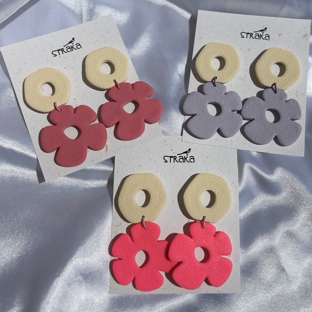 Pastelové farby vytvárajú príjemnú kombináciu. Geometrické tvary v kombinácii s kvetinovým motívom dodávajú náušniciam svieži a neformálny vzhľad. Náušnice sú skvelým doplnkom na každodenné nosenie.