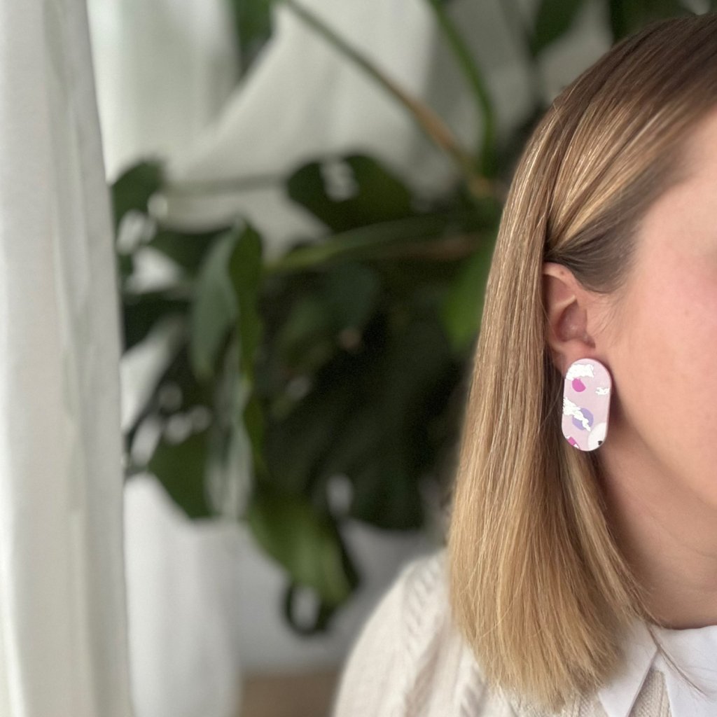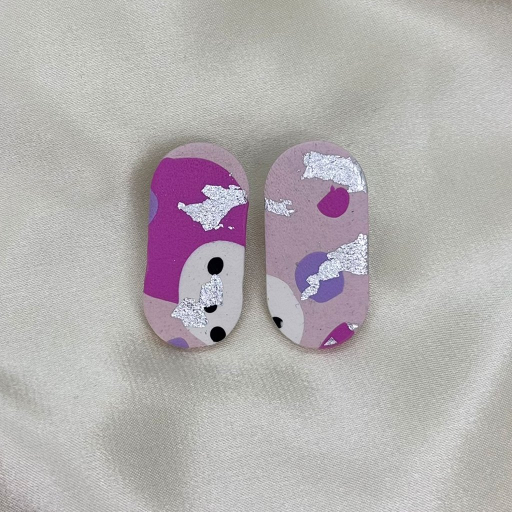 Náušnice z polymérovej hmoty v jemnom elegantnom dizajne, ktorý je veľmi decentný no vďaka farebnej kombinácii pastelových farieb a striebornej farbz pôsobí zaujímavo. Tento typ náušníc je všestranný a ideálny pre každodenné nosenie.