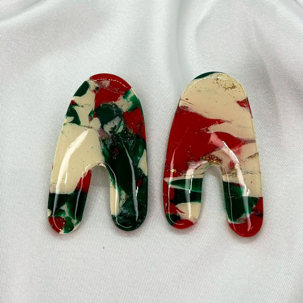 Náušnice z polymérovej hmoty v elegantnom dizajne, ktorý je veľmi decentný no vďaka farebnej kombinácii vo vianočnom štýle pôsobí zaujímavo. Tento typ náušníc je všestranný a ideálny pre každodenné nosenie.