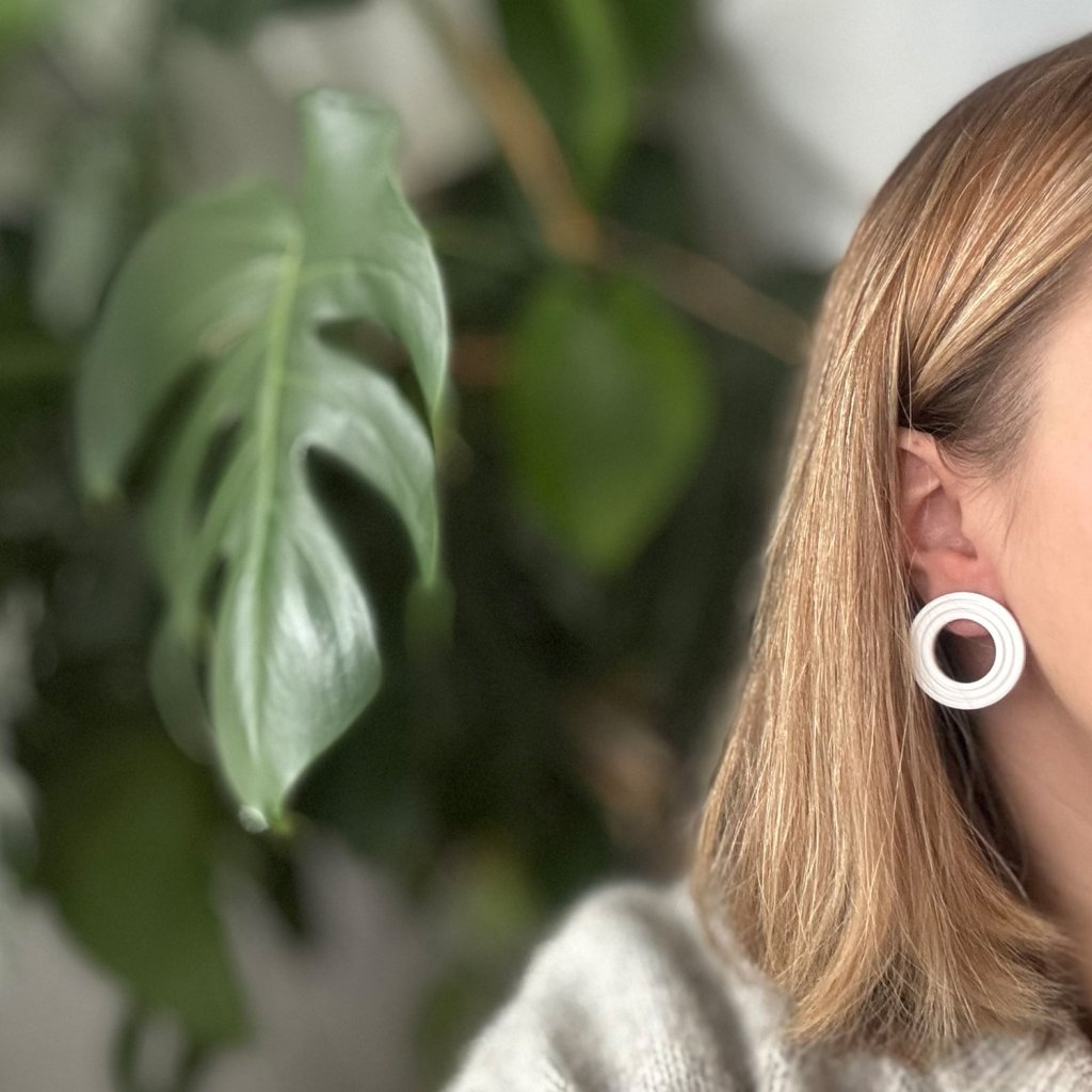 Náušnice z polymérovej hmoty pôsobia elegantne a minimalisticky. Ich čistý kruhový dizajn s jemným vrstvením pridáva hĺbku a sofistikovanosť. Tento štýl je univerzálny a môže sa hodiť na rôzne príležitosti, od každodenného nosenia až po formálne udalosti. Perfektné pre ženy, ktoré preferujú nadčasové a ľahko kombinovateľné kúsky.