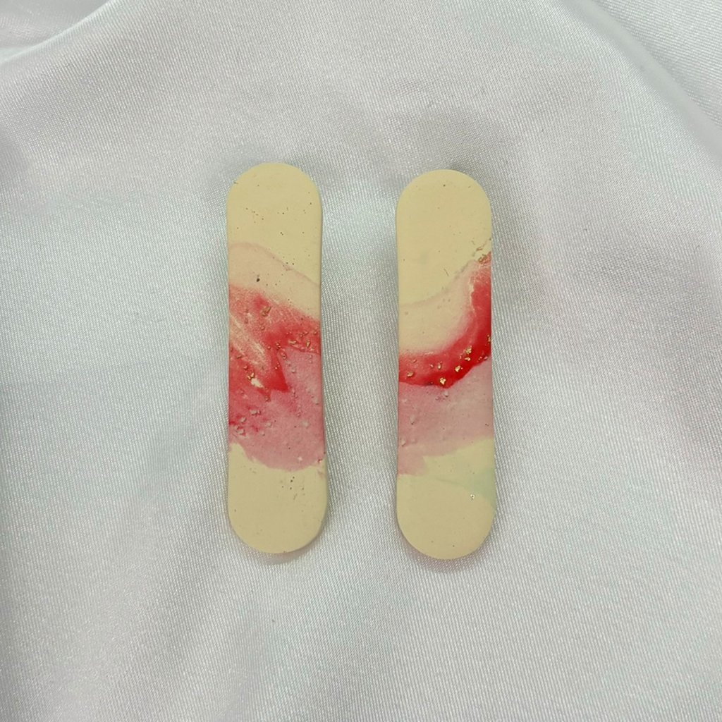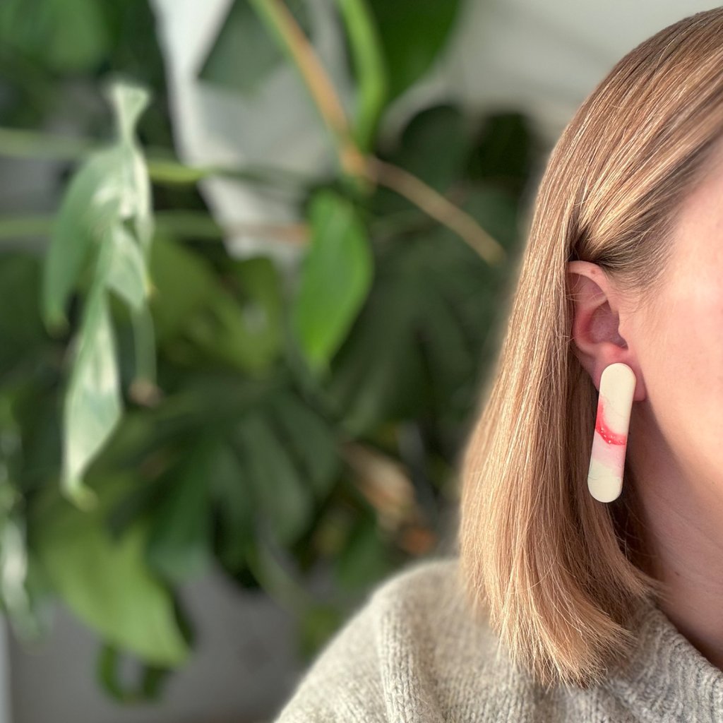 Náušnice z polymérovej hmoty v jemnom elegantnom dizajne, ktorý je veľmi decentný no vďaka farebnej kombinácii pôsobí zaujímavo. Tento typ náušníc je všestranný a ideálny pre každodenné nosenie.