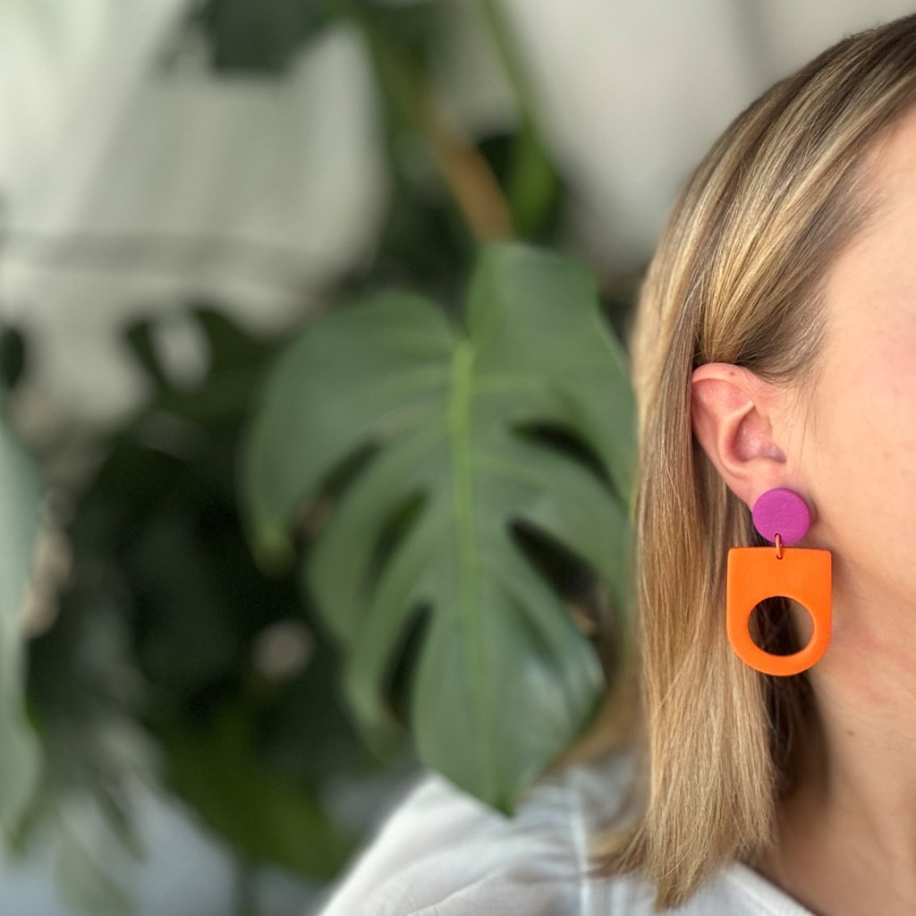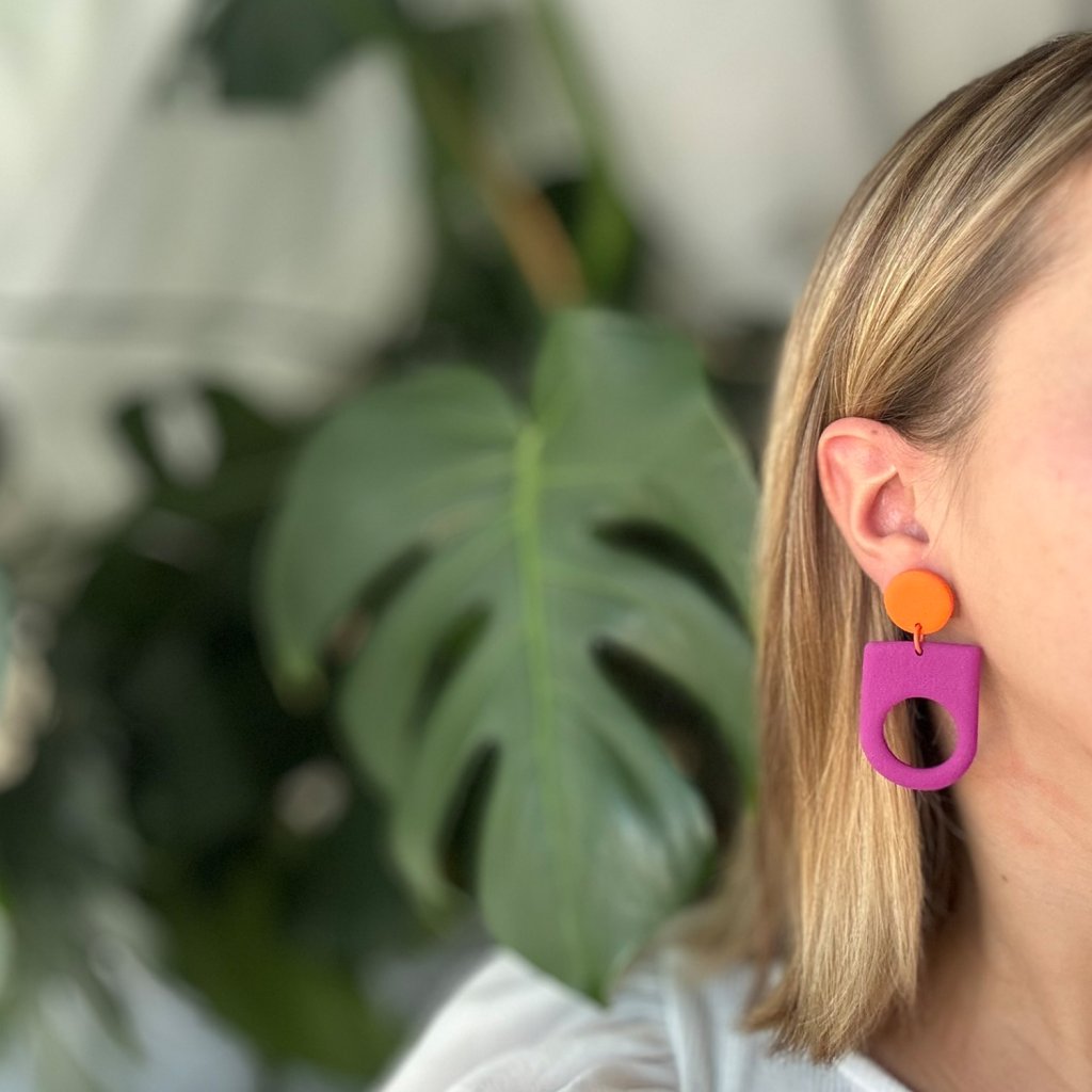 Náušnice z polymérovej hmoty, ktoré sú zábavné, odvážne a moderné. Kombinácia farieb vytvára energický a dynamický kontrast, ktorý okamžite upúta pozornosť. Ich geometrický dizajn im dodáva minimalistický, no výrazný štýl. Sú ideálne pre ženy, ktoré obľubujú hravé a farebné doplnky.