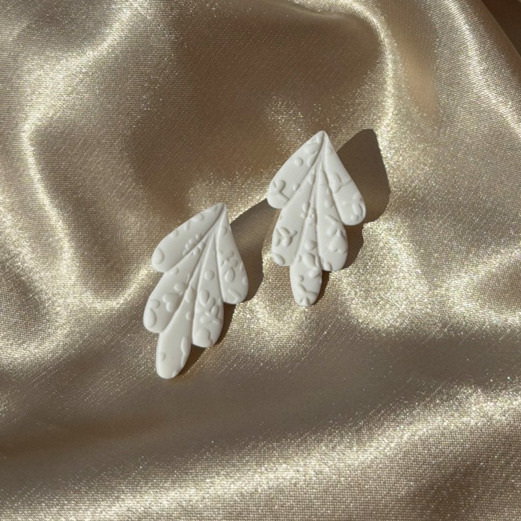 Náušnice z polymérovej hmoty, ktoré pôsobia veľmi jemne a elegantne. Jemné reliéfne vzory (kvietky, bodky, lístky) dodávajú náušniciam hĺbku a detail, čo robí z jednoduchých náušníc umelecký kúsok. Náušnice sú ľahko kombinovateľné k akémukoľvek outfitu.