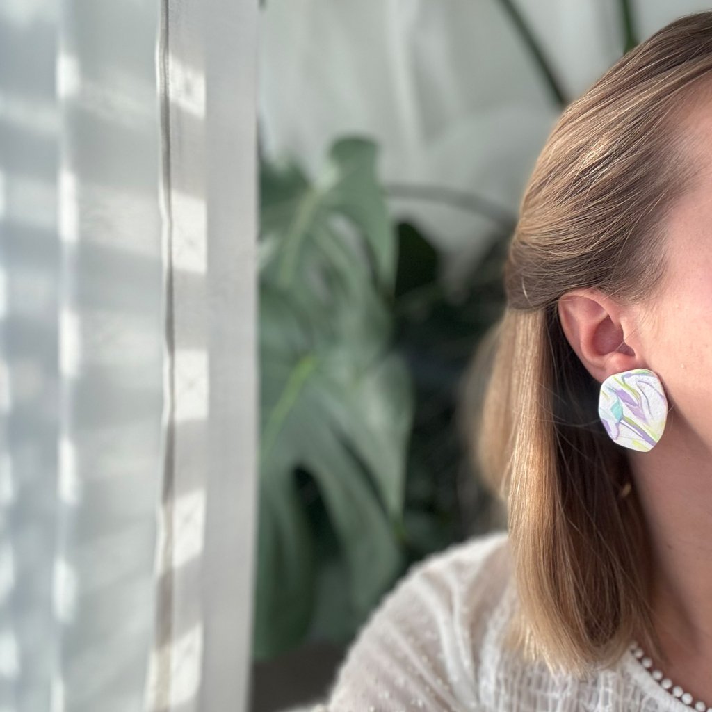 Náušnice z polymérovej hmoty majú hravý a pútavý dizajn, ktorý je doplnený jemnými farebnými kombináciami. Každý pár náušníc je originálny svojou asymetriou a živými farbami, ktoré sa miešajú do jedinečných vzorov. Náušnice sú vhodné na špeciálne príležitosti ale aj na každodenné nosenie.