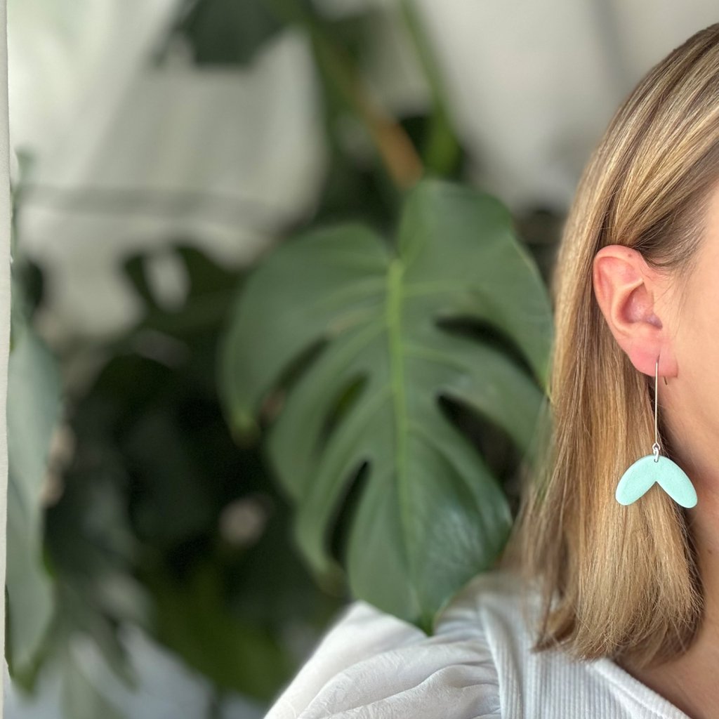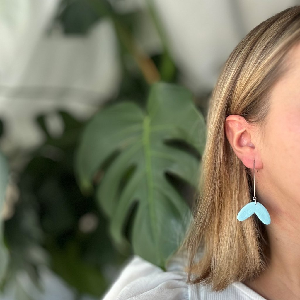 Náušnice z polymérovej hmoty vo veľmi jemnom dizajne. Minimalistický tvar s dlhým háčikom dodáva náušniciam eleganciu. Náušnice sú vhodné na každodenné nosenie, no môžu zaujať aj ako doplnok k jednoduchým a vzdušným outfitom.