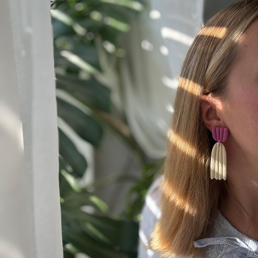 Každý pár je ručne vyrobený z ľahkej polymérovej hmoty, vďaka čomu sú náušnice pohodlné aj pri celodennom nosení. Ich jemný pohyb a decentný kontrast farieb krásne zvýrazní ženskosť a dodá tvojmu outfitu šmrnc.